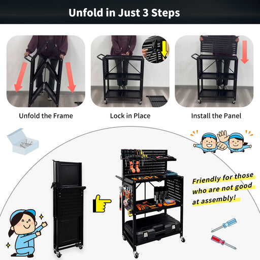 View full detailsLumizone Tool Cart Utility cart 3-Tier Foldable Tool cart on wheels DIY Use Tool organization Tool Storage Weight Capacity of 330 lbs Mobility Transport Garage organizers and storage